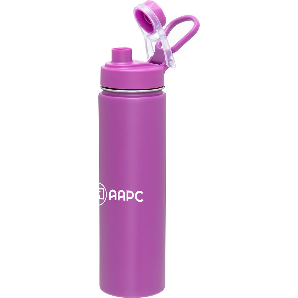 - Matching threaded lid with built-in drinking spout and hinged cap for easy access
